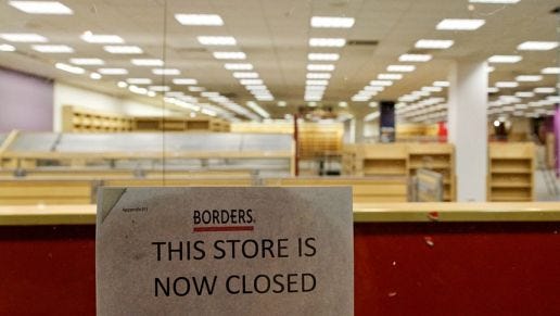 Borders had over four hundred stores and a market capitalisation of over two billion dollars in 1999. It filed for bankruptcy in 2011, liquidating over ten thousand jobs. Blockbuster had nine thousand stores globally and employed sixty thousand people. The thing that killed it was not technology, precisely. It was the willingness of Netflix to absorb short-term losses to acquire long-term customer lock-in. Blockbuster had multiple opportunities to buy Netflix. It declined.