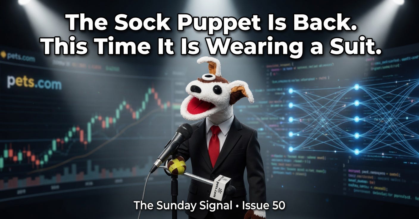 This week, on the fiftieth issue of The Sunday Signal, we examine three things. First, what the sock puppet actually taught us, and why the lesson applies right now. Second, the full sweep of technology disruption across forty years, told honestly, without the survivor bias that distorts every boardroom presentation. Third, an investor’s guide with a concrete hot list: who is truly insulated, who is already dying, and why the most dangerous sentence in finance right now is “AI is helping everyone.”