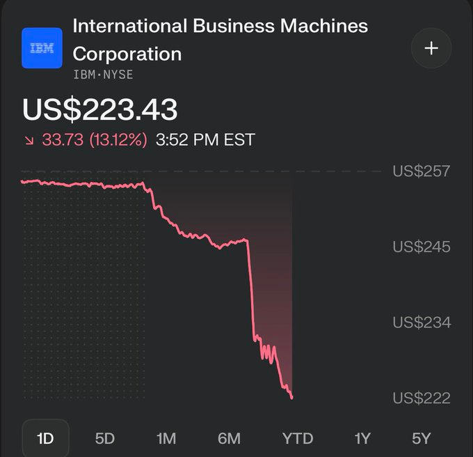 On Monday 23 February 2026, IBM’s shares fell roughly 13% in a single trading session. Its worst single-session fall in over twenty-five years.
