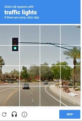 Then the work changed. By 2012 the words were replaced by image grids taken from Google Street View. Every click told a machine what a traffic light looks like. Where a pedestrian crossing begins. Where a road ends. You were not passing a test. You were annotating the visual world for free.