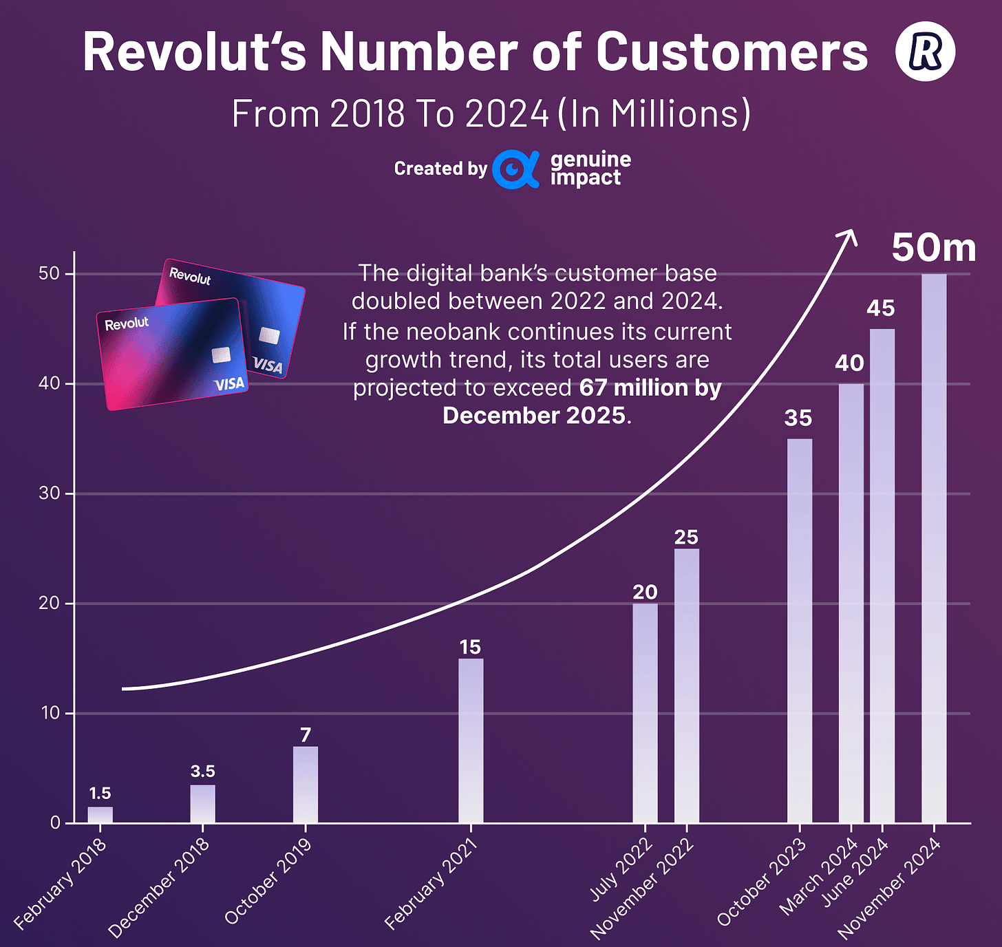 Revolut. What began as a pitch about foreign exchange fees became a global financial super-app. Revenues hit £1.8 billion in 2023, profits turned positive and customer numbers passed 38 million. Founders Nikolay Storonsky and Vlad Yatsenko are each now worth over £2 billion, as Revolut eyes an IPO that could value it near £30 billion. The early slides promised convenience. The company built a bank without branches.