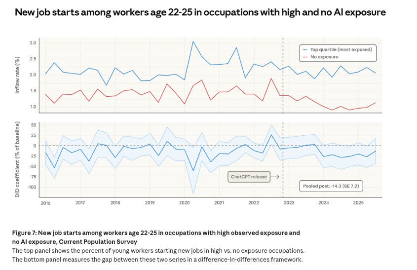 The 14 per cent drop in youth hiring in AI-exposed roles is already in the data.
