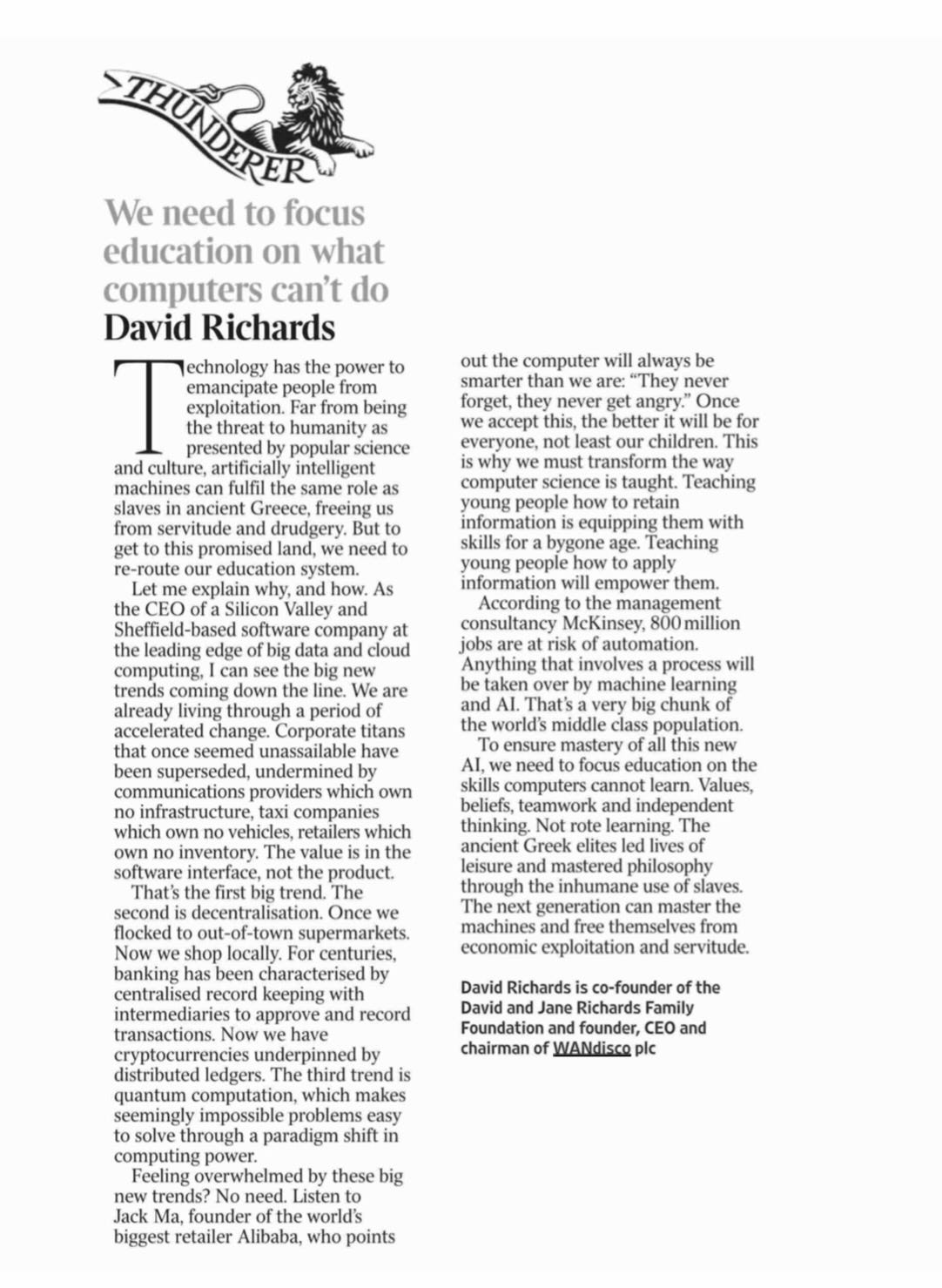 David Richards MBE is a technology entrepreneur, educator, and commentator.